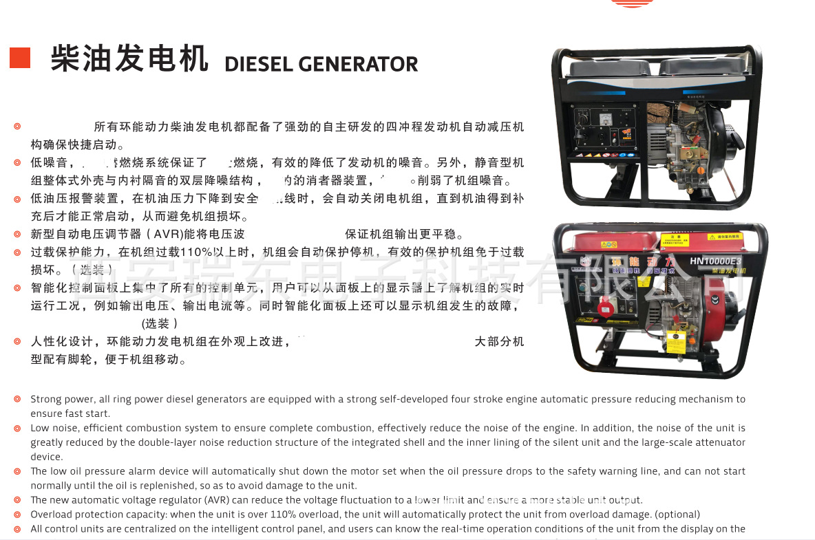 1、外观设计移动便捷 2、动力再升级,免减压设计有效保护电瓶和启动马达3、铜电机,足功率,耐高温4、防水面板,简单易用5、油箱续航,适合环境6、数字调压器,负载范围广,负载力7、液晶数显表,电压、频率、工作时间8、加厚减震底板,加厚机架,做到减震、抗压、加固